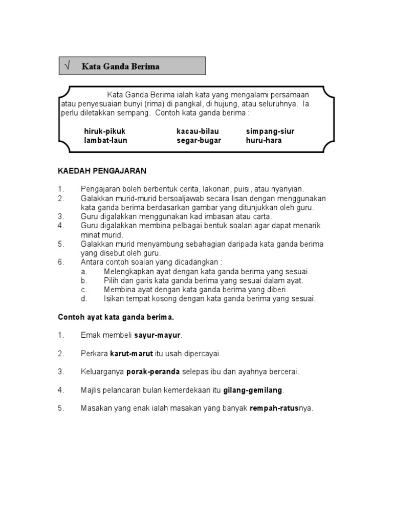 Kata Ganda Online Activity For Tahun 6